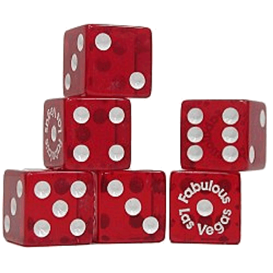 dice are 6-sided with recessed pips that are painted white. The #1 side has